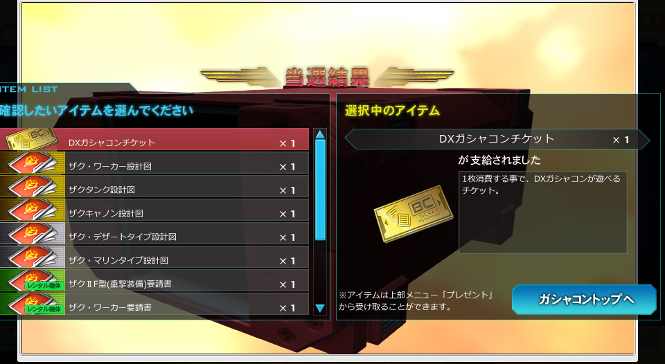 DXガシャコンチケット。