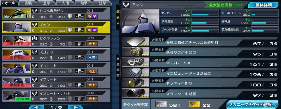 たぶんこの二、三戦のうちでいつの間にか戦果として手に入っていたのだろう。初のギャン図だ。