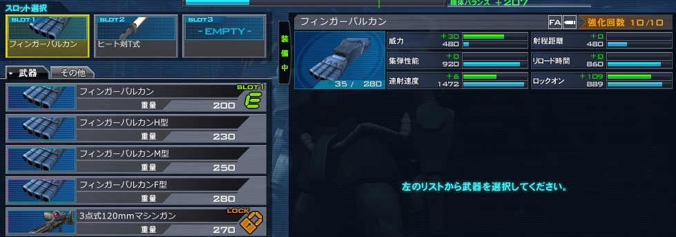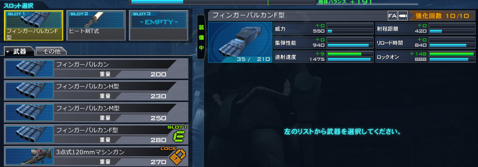 フィンガーバルカンNは敵に弾は当たるのだが、どうにも威力が弱い。結果、なかなか良いダメージが与えられない。
